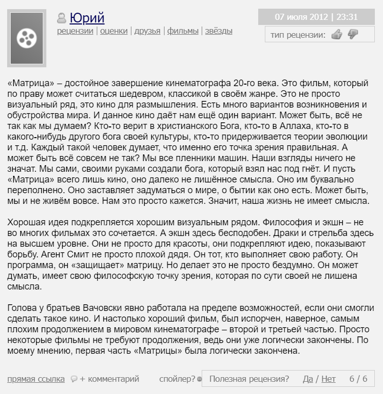 «Матрица» — Отзывы и Рецензии Зрителей о Всех Фильмах Кинофраншизы